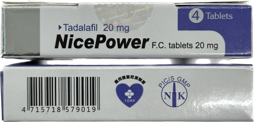 • 每盒含 4 錠 健力仕膜衣錠 NicePower 20mg,每錠含 20mg Tadalafil(犀利士成分)