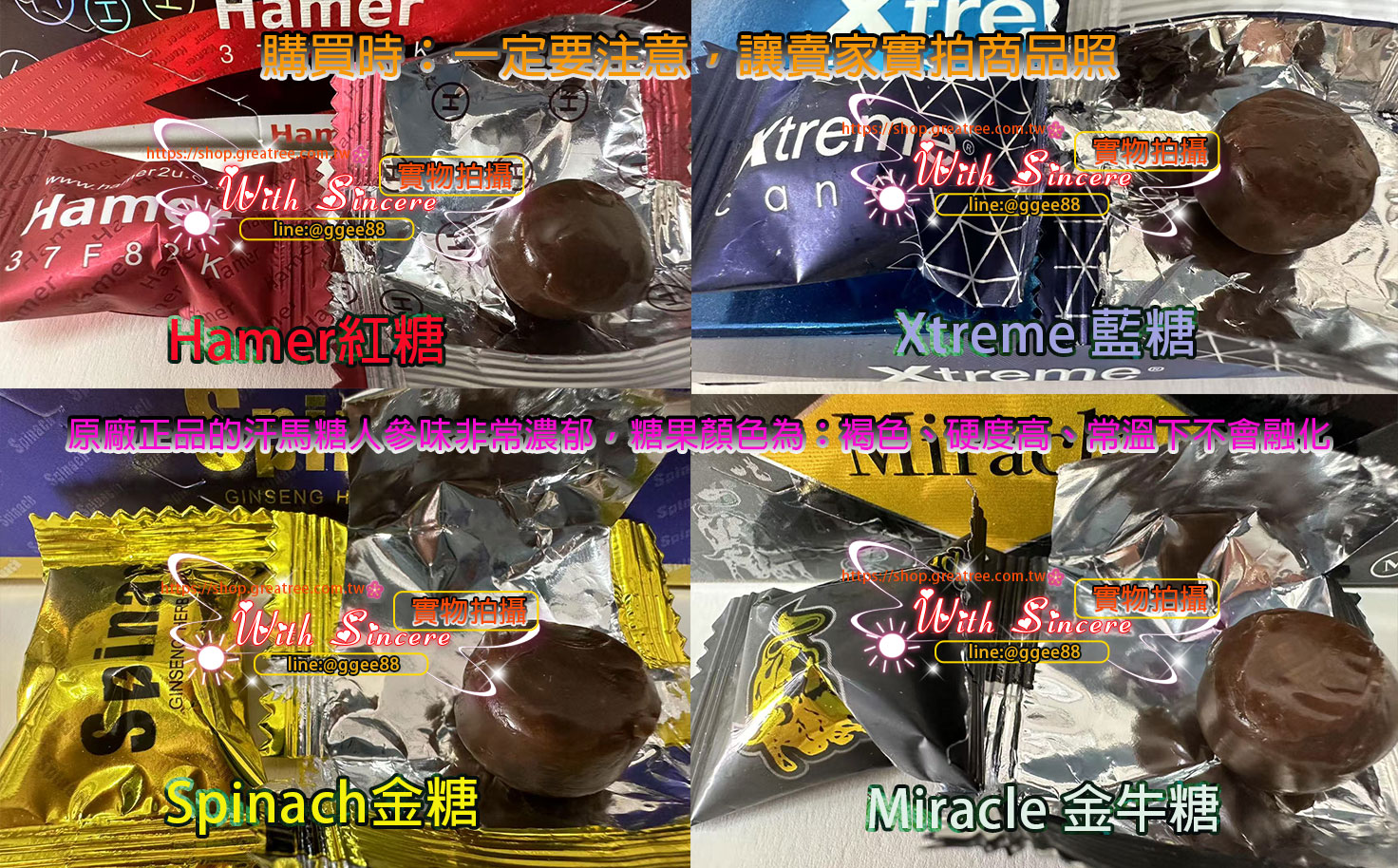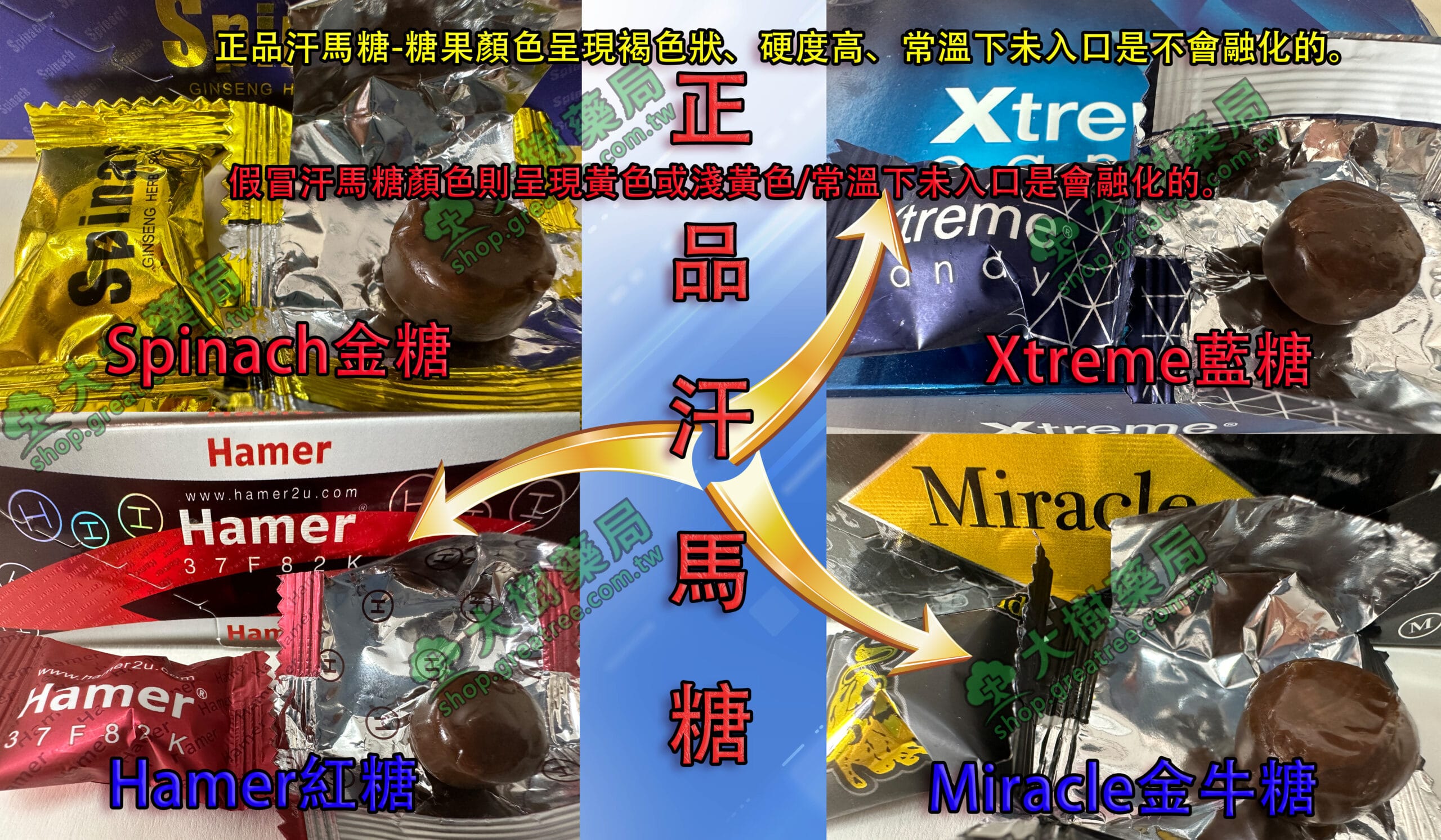 - 顏色誤區:需要注意的是,市場上流傳的「汗馬糖應為灰色」是錯誤觀念,實際上正品無論是 Hamer 紅糖、Xtreme 藍糖、Spinach 金糖、Miracle 金牛糖,還是 Mentalk 黑糖,顏色都應是褐色。