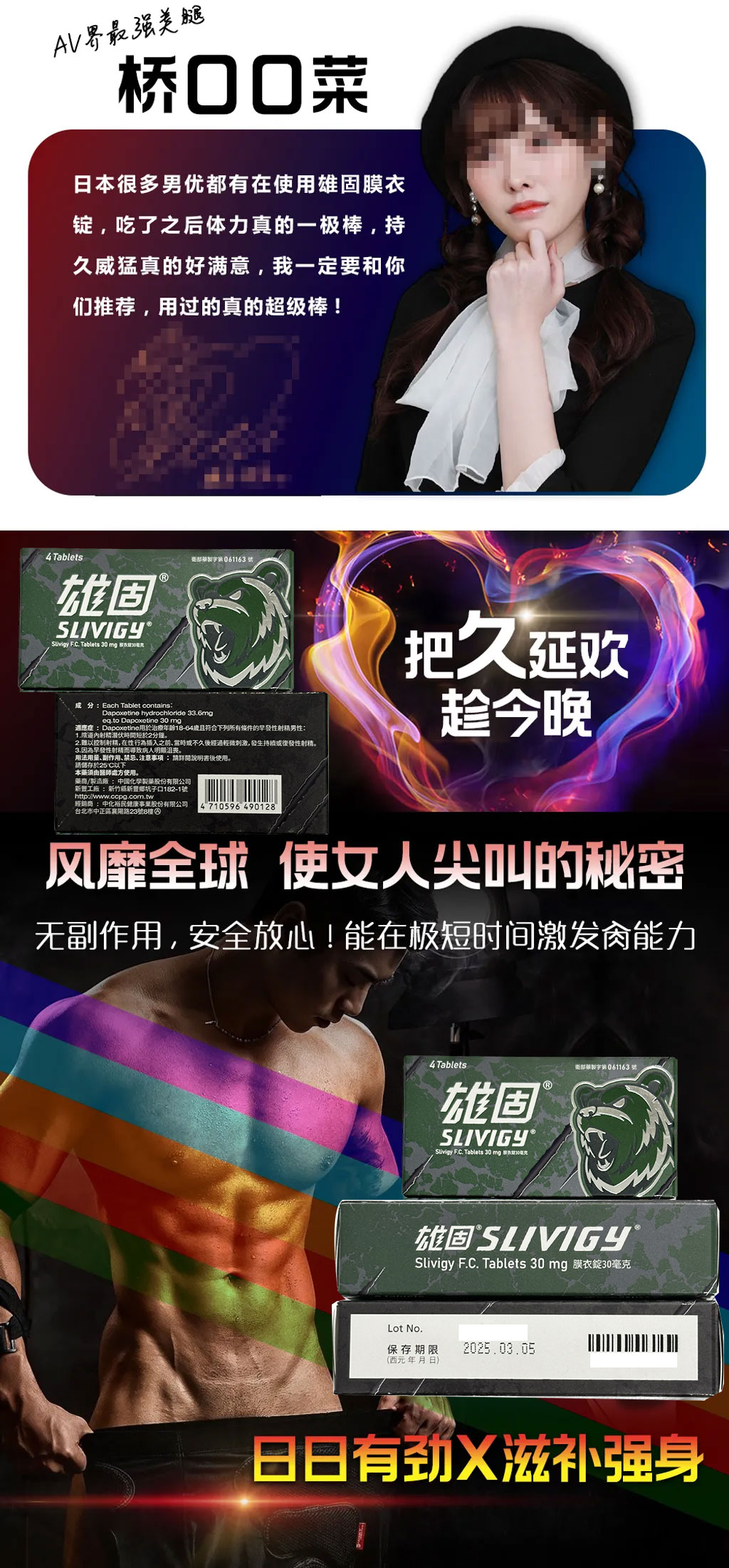 雄固 Slivigy 30mg 是中化藥業精心研發的早洩(PE)治療專用藥,專為那些希望延長性愛時間、擁有更強掌控力的男性設計。作為必利勁的學名藥,這款產品以其卓越的延時效果聞名,幫助男性輕鬆掌握性愛節奏,擺脫早洩困擾,重拾性愛自信。其主要成分達泊西汀(Dapoxetine),能顯著延長性愛時間,讓每一次親密時刻都更加持久、充滿激情。