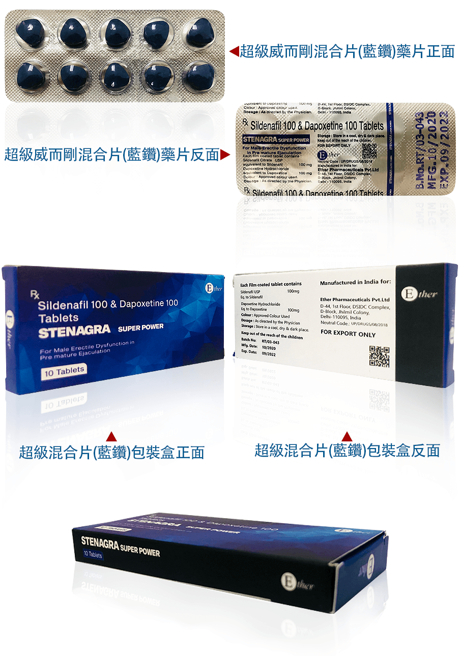 印度藍鑽(Stenagra Super Power)是一款來自印度 AMBITREE 藥廠的高效雙效壯陽藥,結合威而鋼的助勃成分「西地那非」與早洩延時成分「達泊西汀」,一次解決男性勃起障礙與射精過快問題,是追求硬度與持久力男性的熱門選擇。