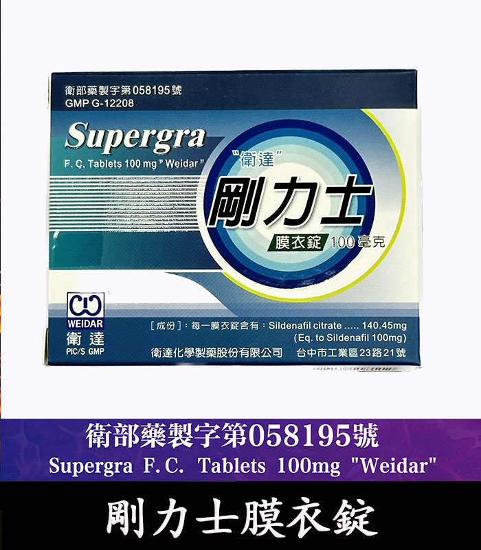 剛力士膜衣錠(Supergra 100mg) 是一款含有西地那非(Sildenafil)的口服處方藥,專為治療男性勃起功能障礙(ED)所設計。與原廠威而鋼相同成分,剛力士具備相同藥效,但價格更為實惠,是許多男性改善勃起困擾的經濟型選擇。